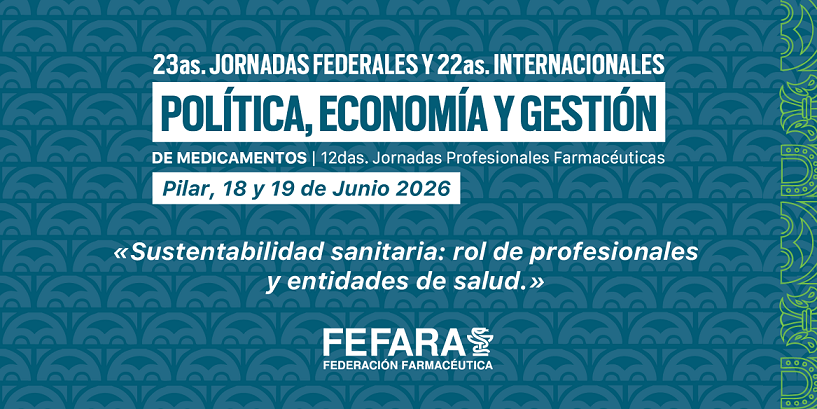 La Federación Farmacéutica, FEFARA, se encuentra organizando las 23as Jornadas Federales y 22as Internacionales de Política, Economía y Gestión de Medicamentos, junto con las 12as Jornadas Profesionales Farmacéuticas, bajo el lema “Sustentabilidad sanitaria: rol de profesionales y entidades de salud”